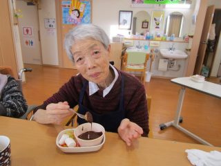 先日のバレンタインは、利用者の皆さまと一緒にチョコレートフォンデュを