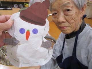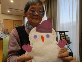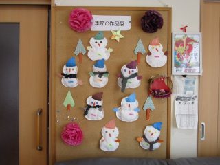 利用者様と手作りした雪だるまが飾られています
